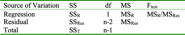 The coefficient of determination \((R^2)\) is the proportion of the variation in \(y\) that is explained by the regression model: \[R^2 = \frac{SS_R}{SS_T} =\frac{SS_T - SS_{res}}{SS_T} = 1 - \frac{SS_{res}}{SS_T}\]