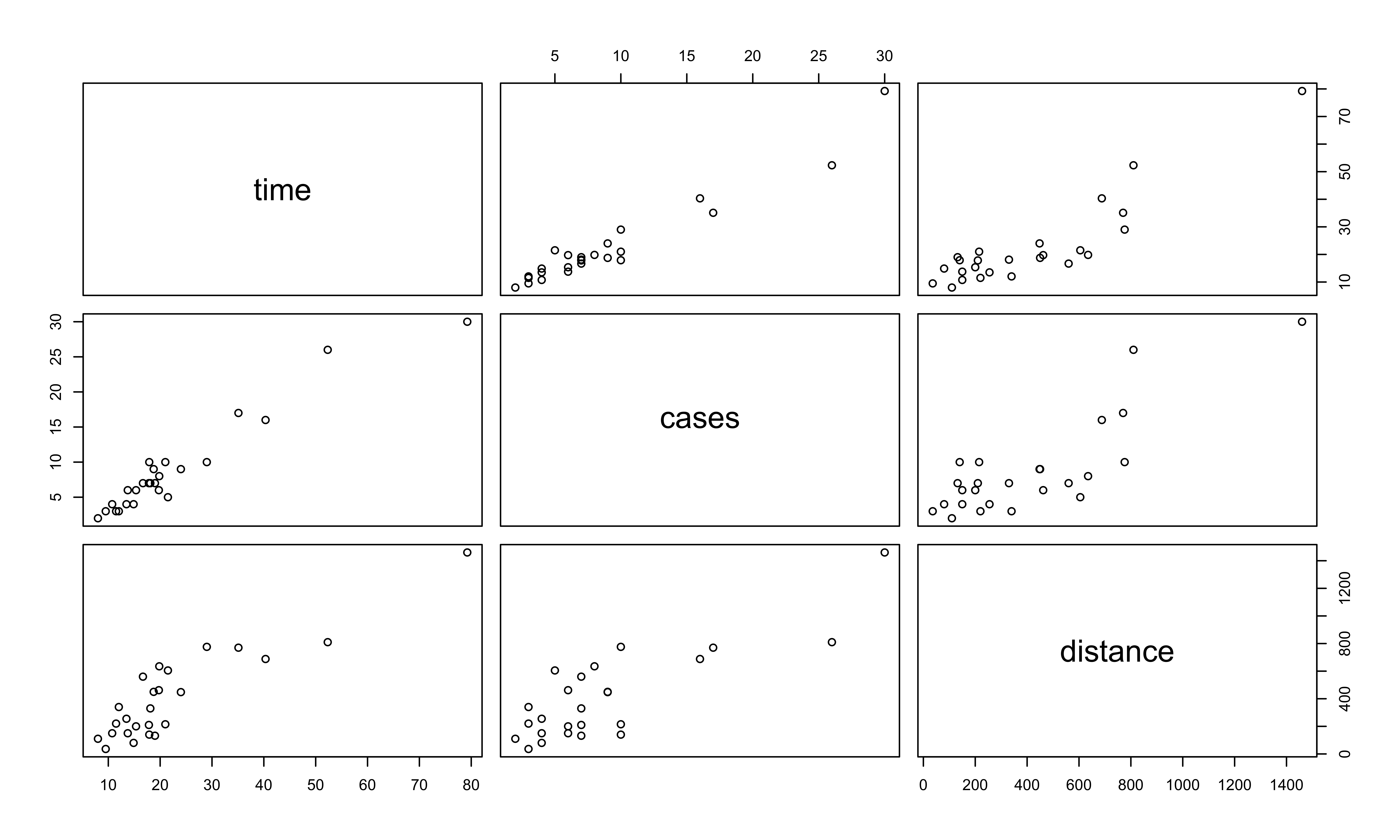 pairs(delivery_data)par(mgp = c(2, 0.8, 0), las = 1, mar = c(4, 4, 0, 0))