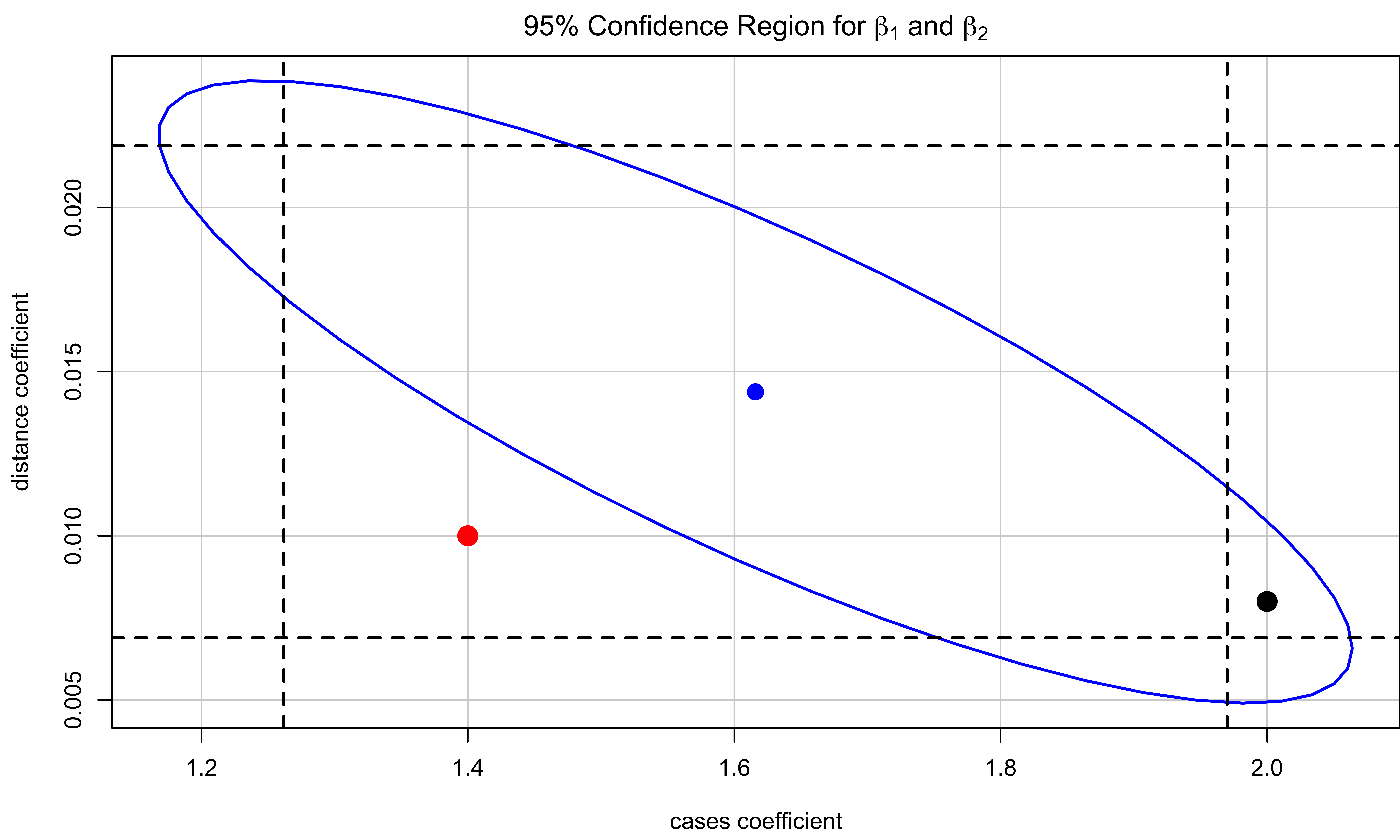 How do we specify a confidence level that applies simultaneously to a set of interval estimates? For example, a \(95\%\) confidence āintervalā for both \(b_1\) and \(b_2\).